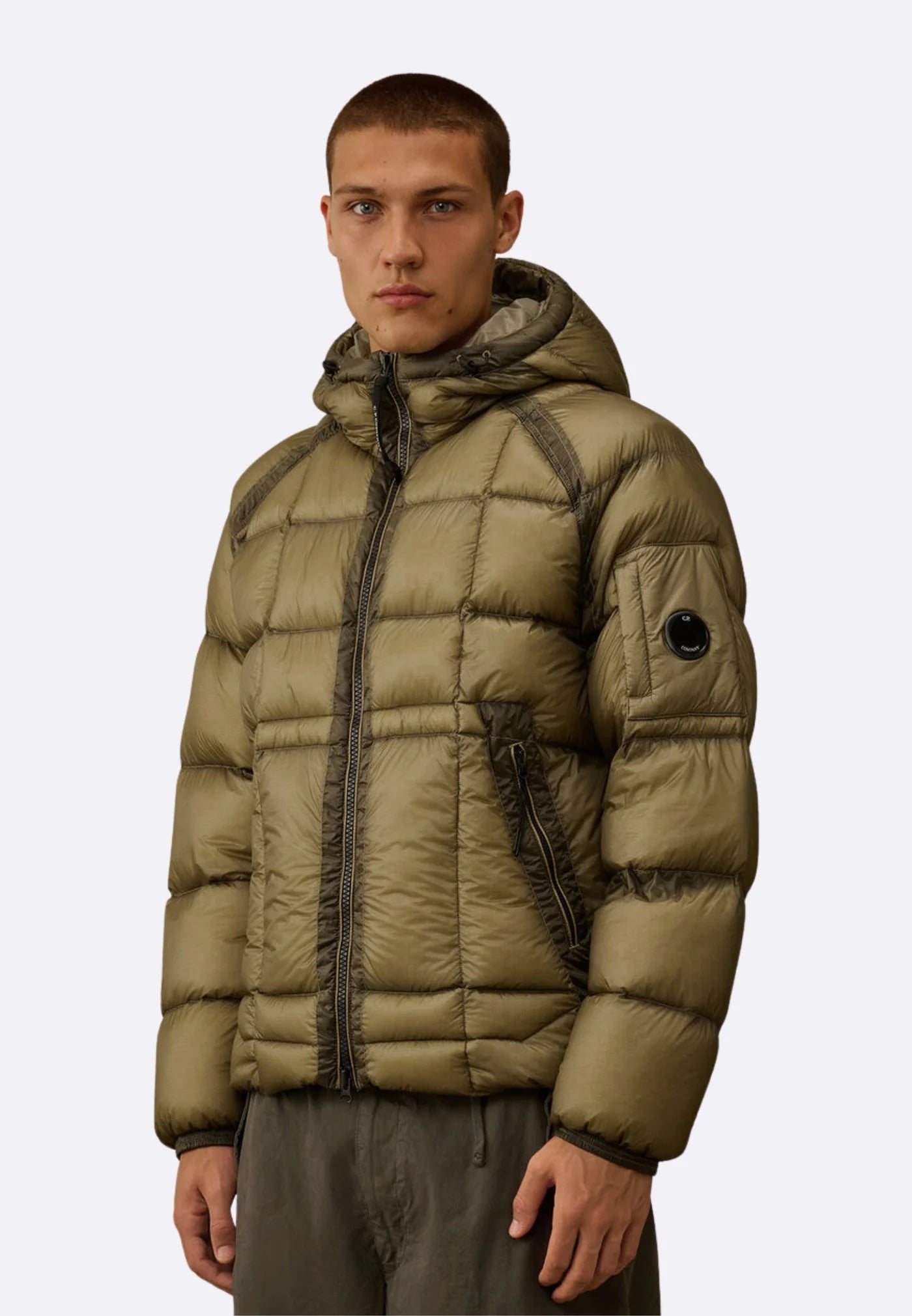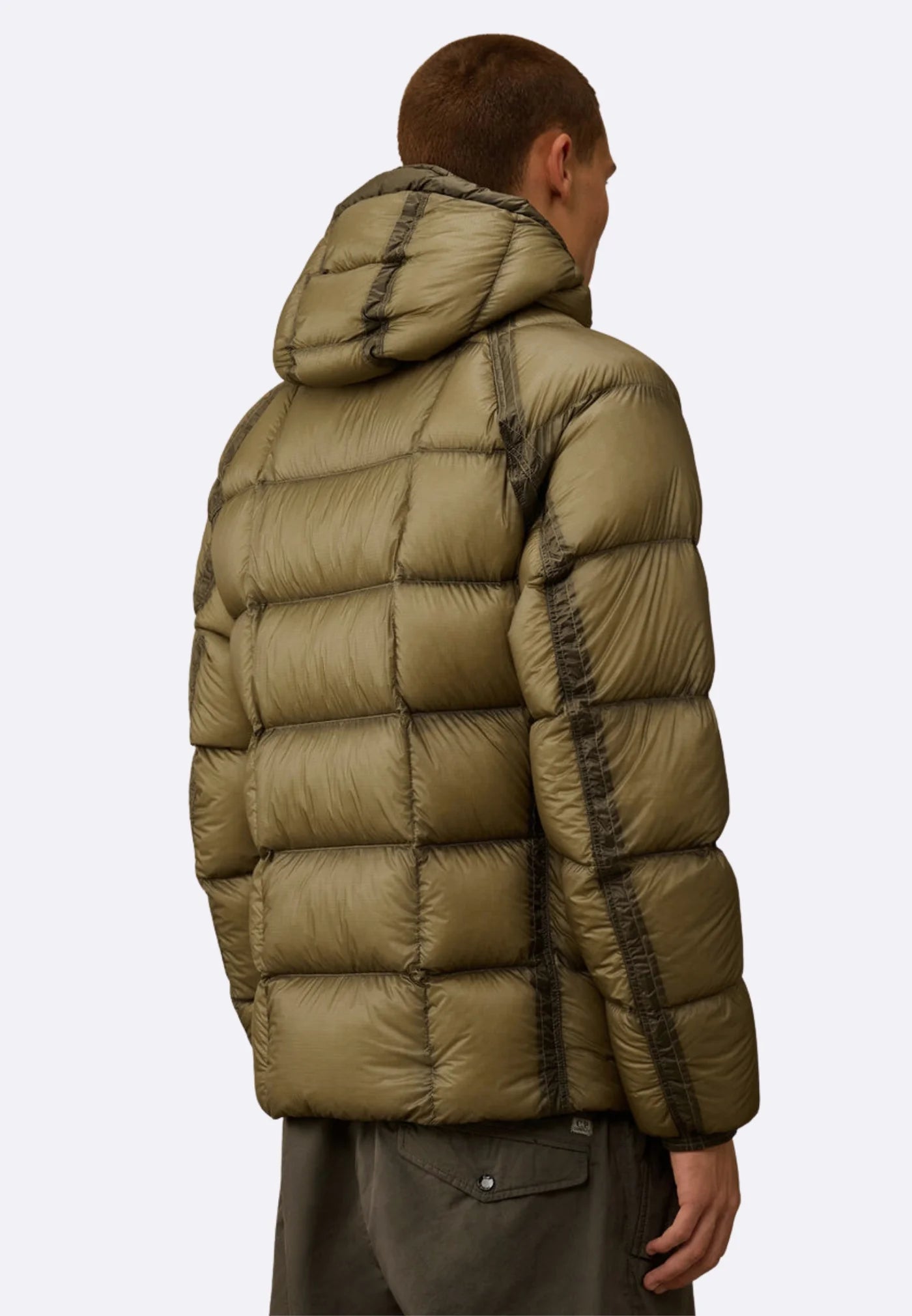 Piumino con cappuccio realizzato in D.D. Shell, un nylon micro-ripstop opaco 7 denari. La leggerezza e la trasparenza del materiale...