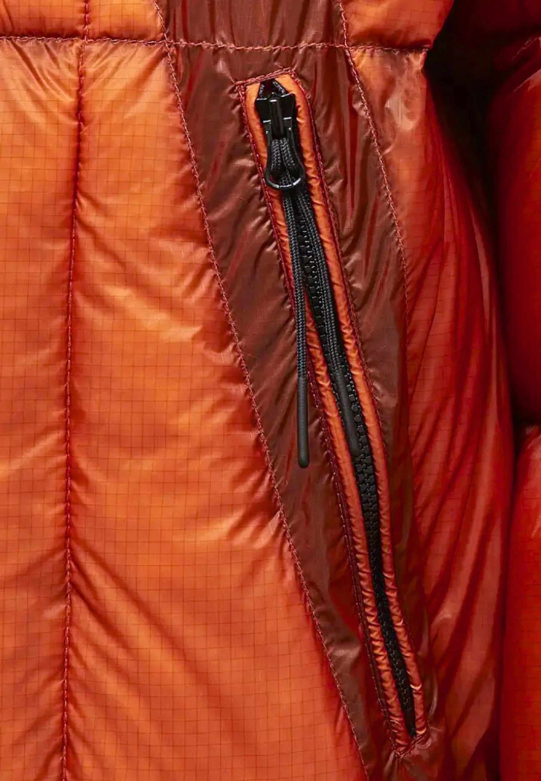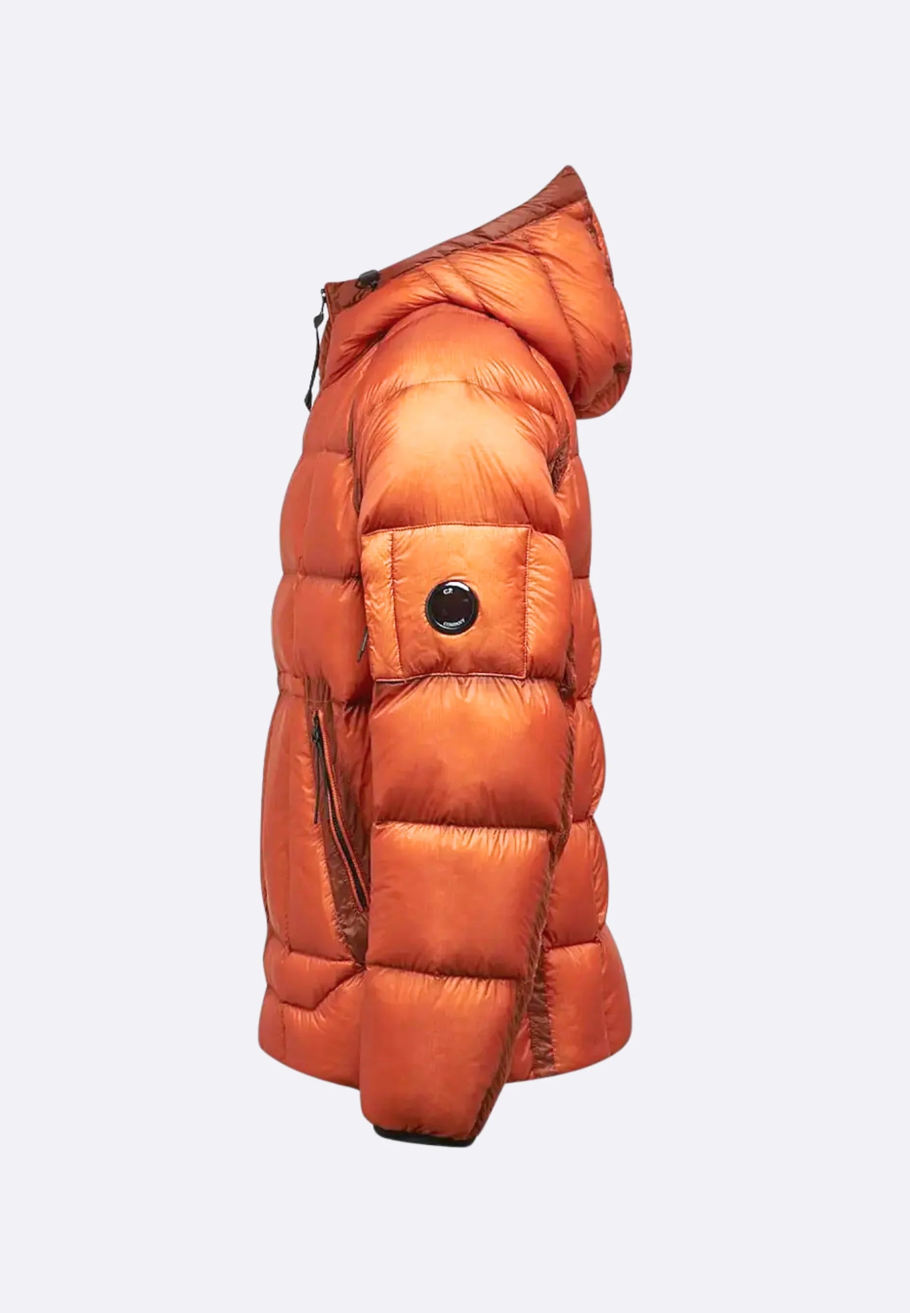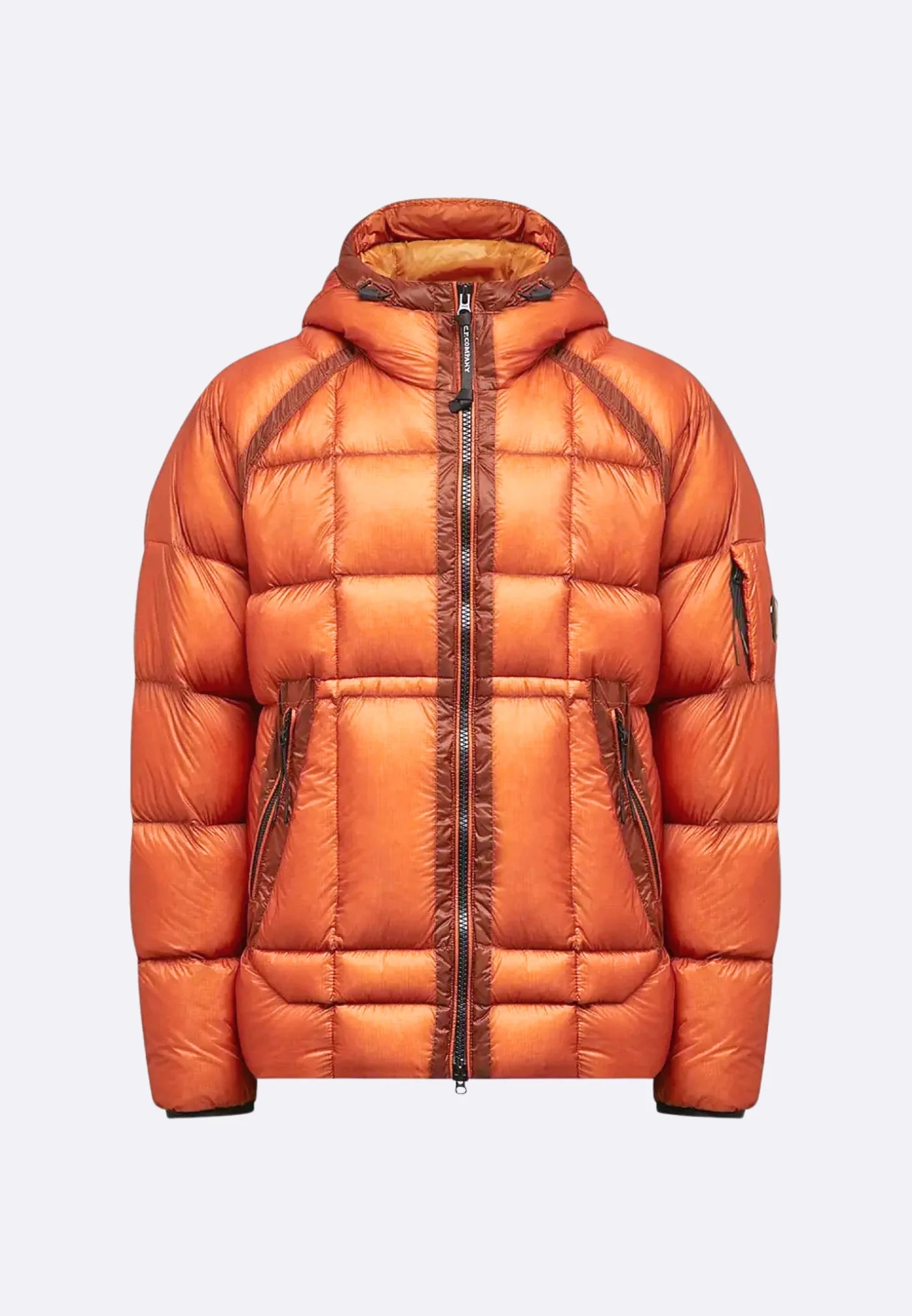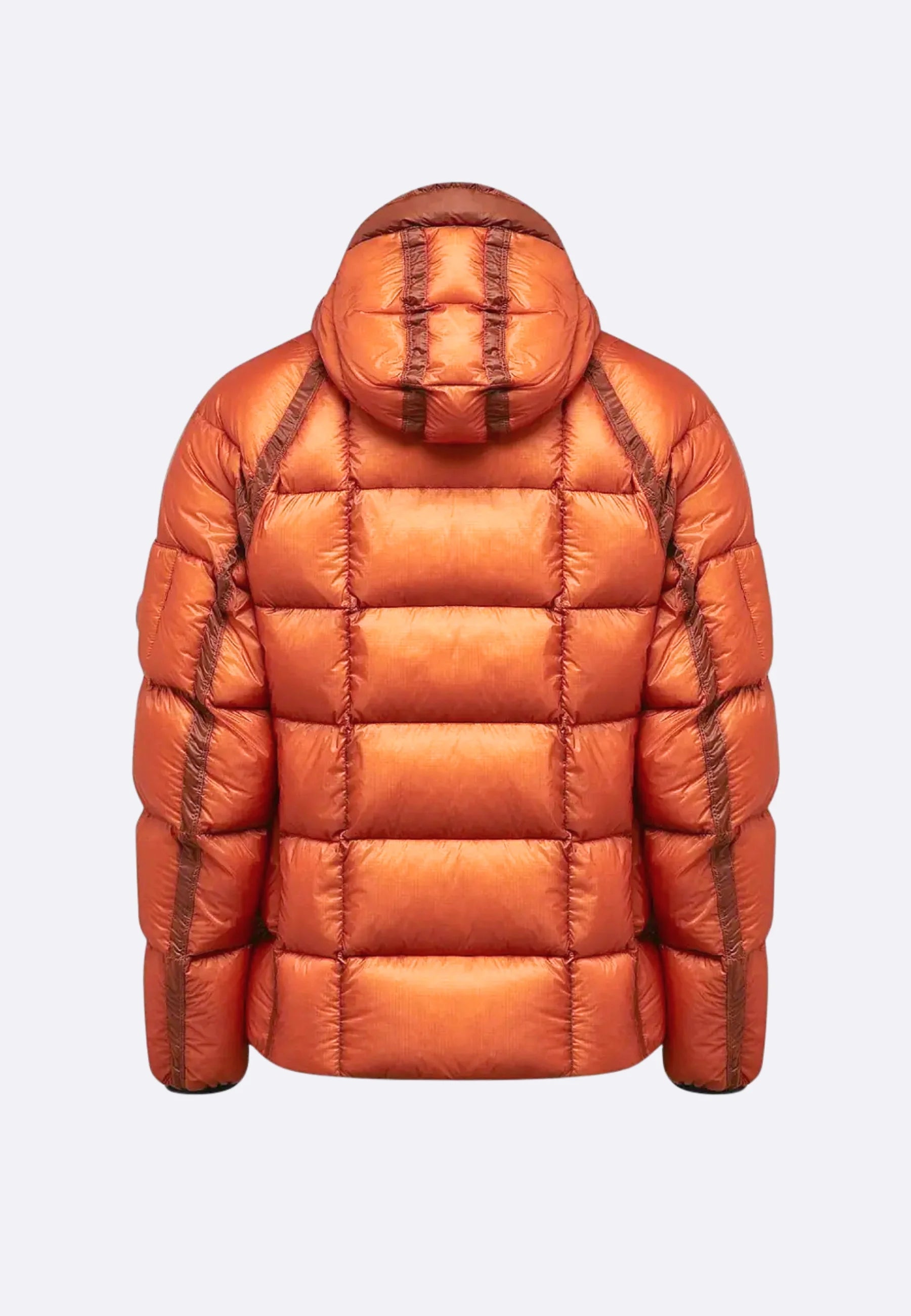 Piumino con cappuccio realizzato in D.D. Shell, un nylon micro-ripstop opaco 7 denari. La leggerezza e la trasparenza del materiale...