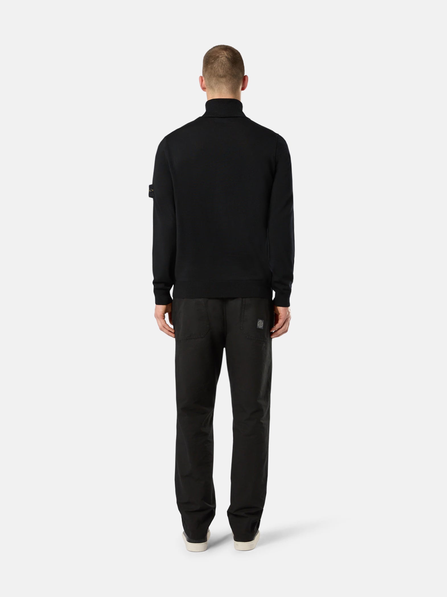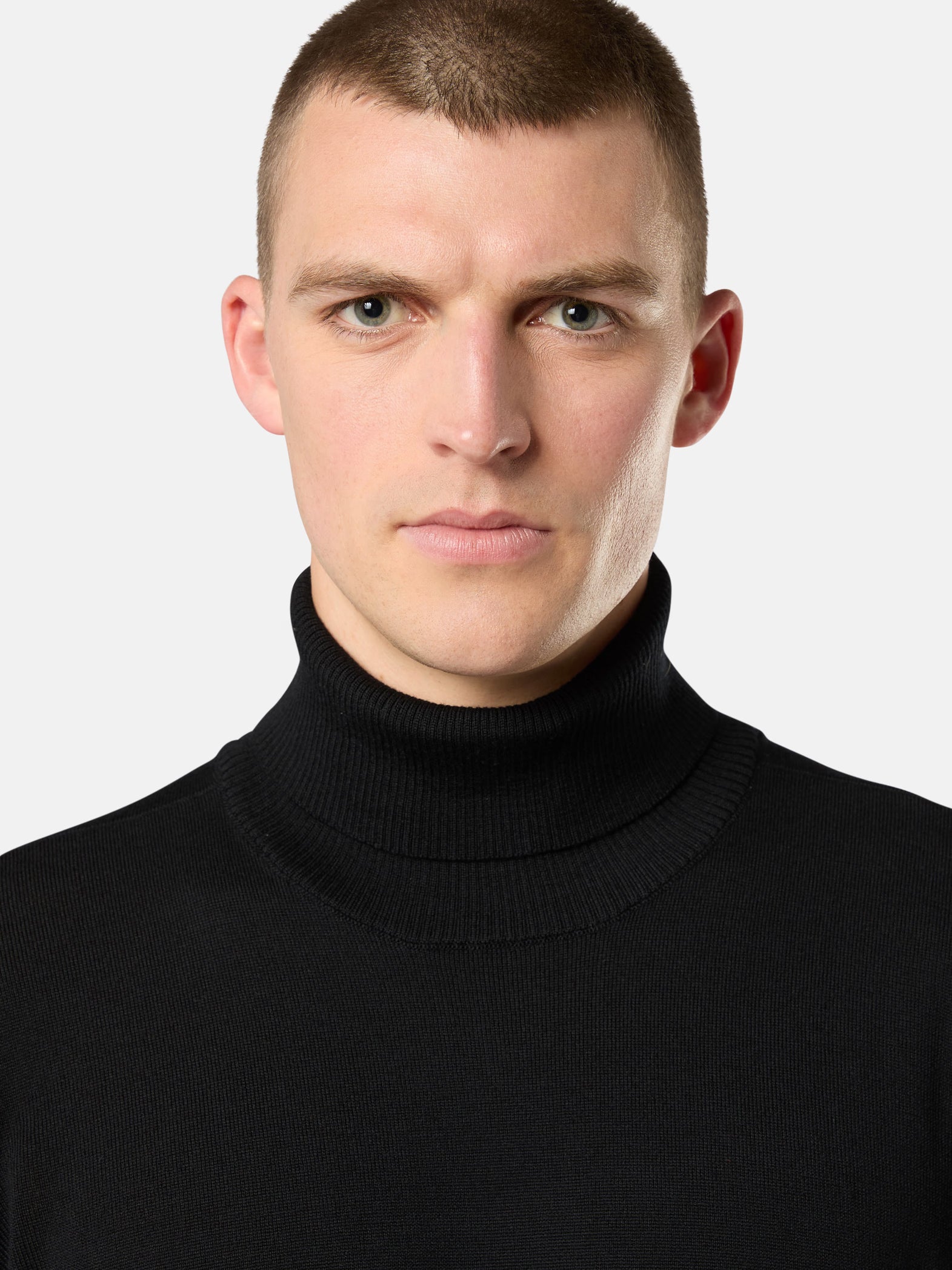 Maglione dolcevita in pura lana leggera RWS con collo, polsini e fascia sul fondo a costine. Finezza 14.